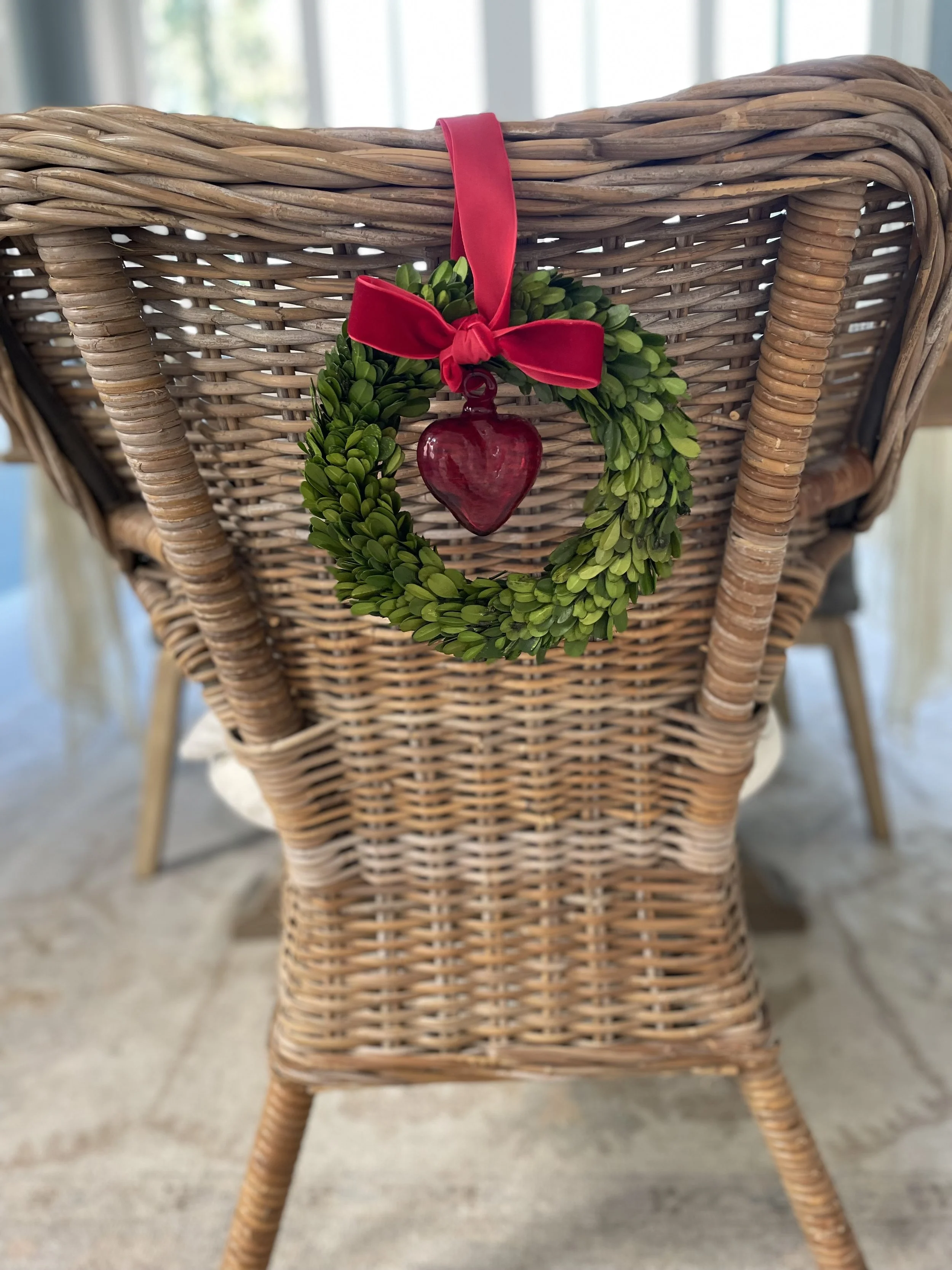 This beautiful glass heart will make any wreath have extra special Christmas spirit. Hang them on the back of a chair, hand them on your door, add them to the top of a gift for the little extra holiday cheer!